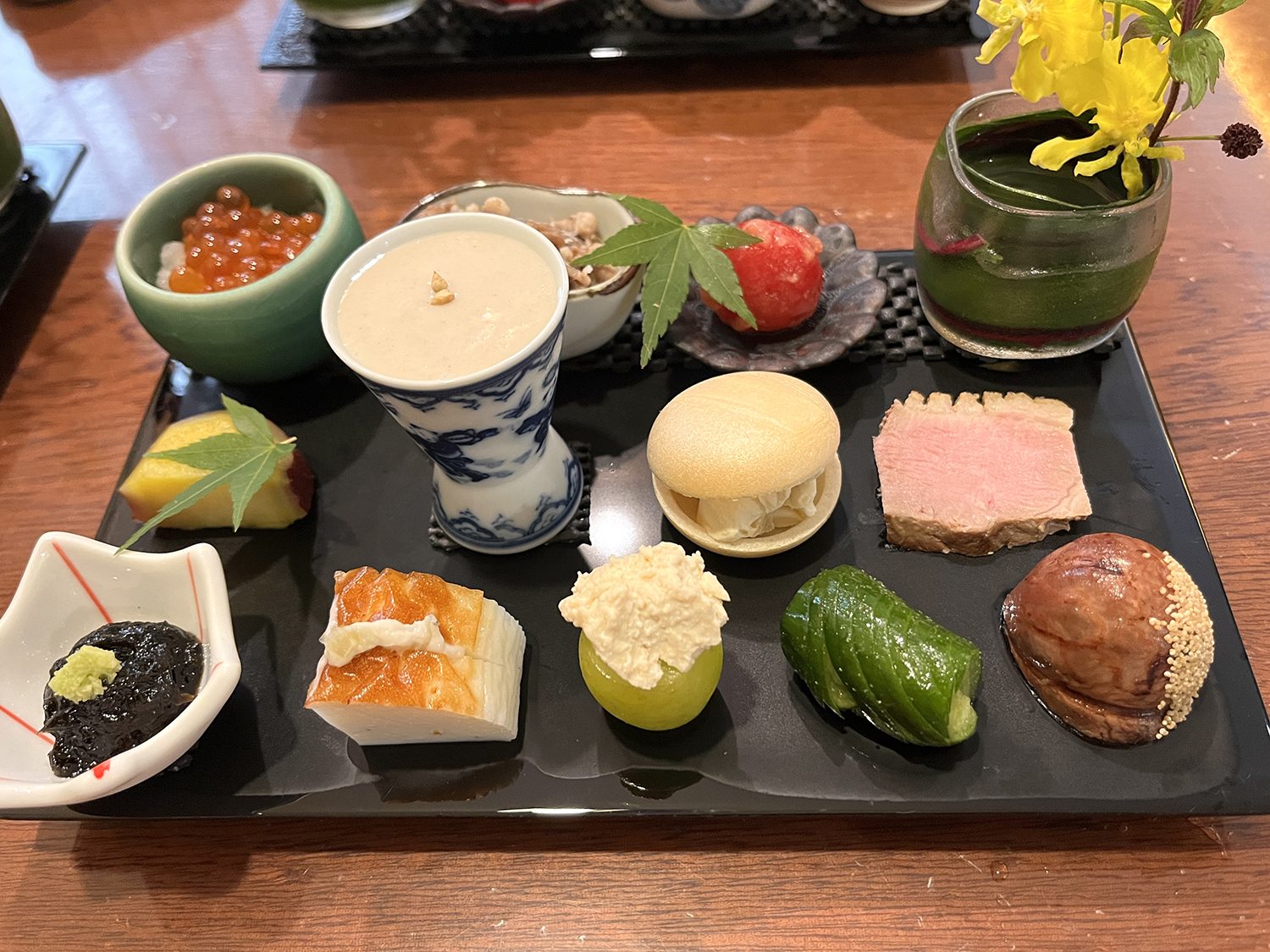 お蕎麦屋さんで焼酎のソーダ割をいただきながら、豪華な前菜、蕎麦のお刺身、てんぷらなどをご馳走になりました。3種類のお蕎麦の食べ比べもとても美味しかったです。