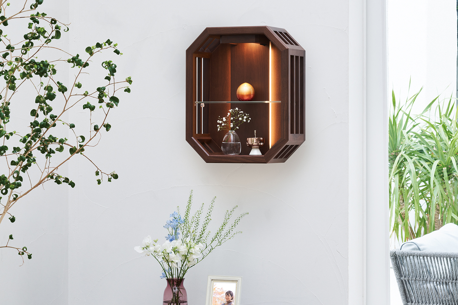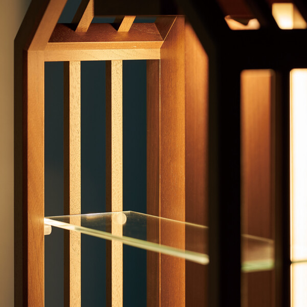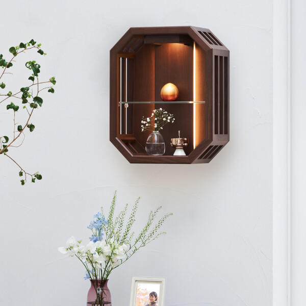 スリットから漏れる光が、木漏れ日のように 周りを美しく照らす仏壇です。