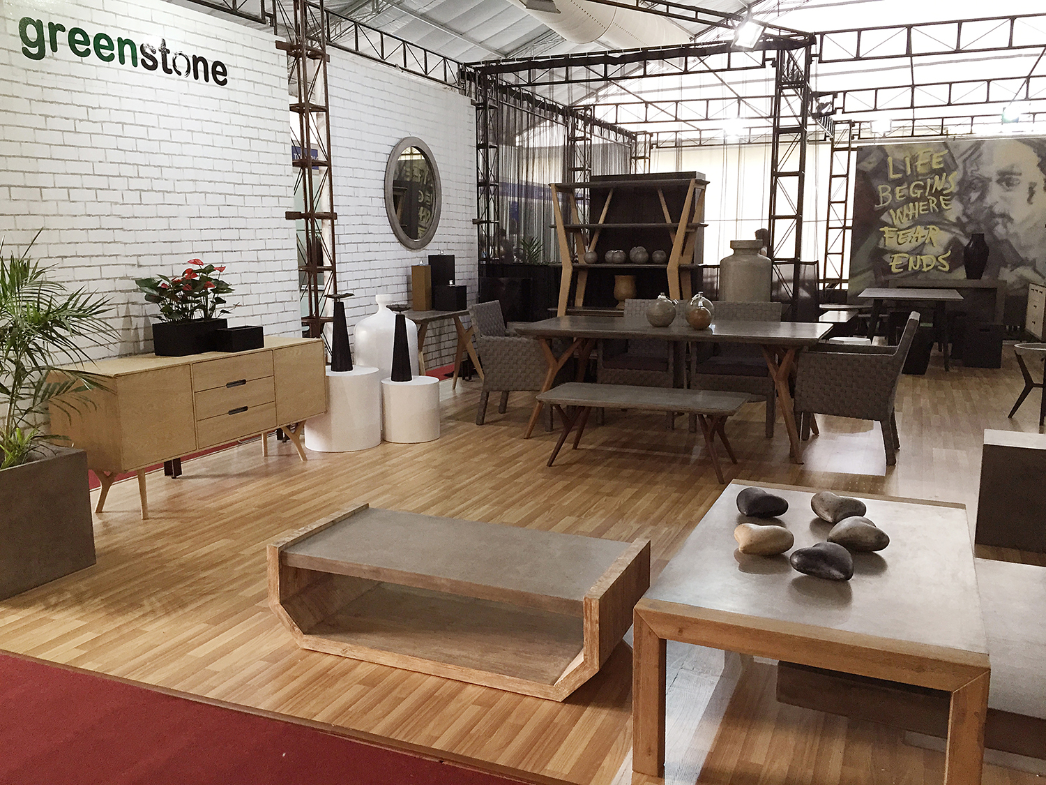 VIFA-ベトナム国際家具展示会2016に新作出展 Displayed ”Boat table” at VIFA 2016. Boat Table W1200×D550×H350 cement / wood Exhibition:Vietnam International Furniture Fair 2016 By GREENSTONE COMPANY LTD. CATEGORIES展示会